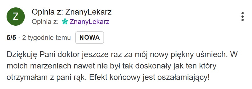 Przygotowałam dla Ciebie specjalistyczny blog w którym odpowiadam na najczęściej pojawiające się pytania oraz obiekcje pacjentów, a także dzielę się case study z efektami z wykonanych zabiegów. To miejsce to wartościowa dawka wiedzy dla osób mających bzika na punkcie swoich zębów, ale i zdrowia jamy ustnej.